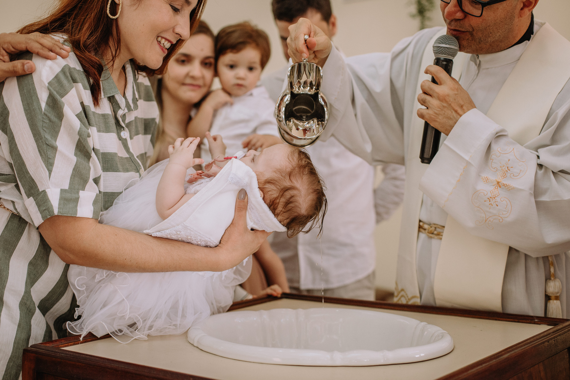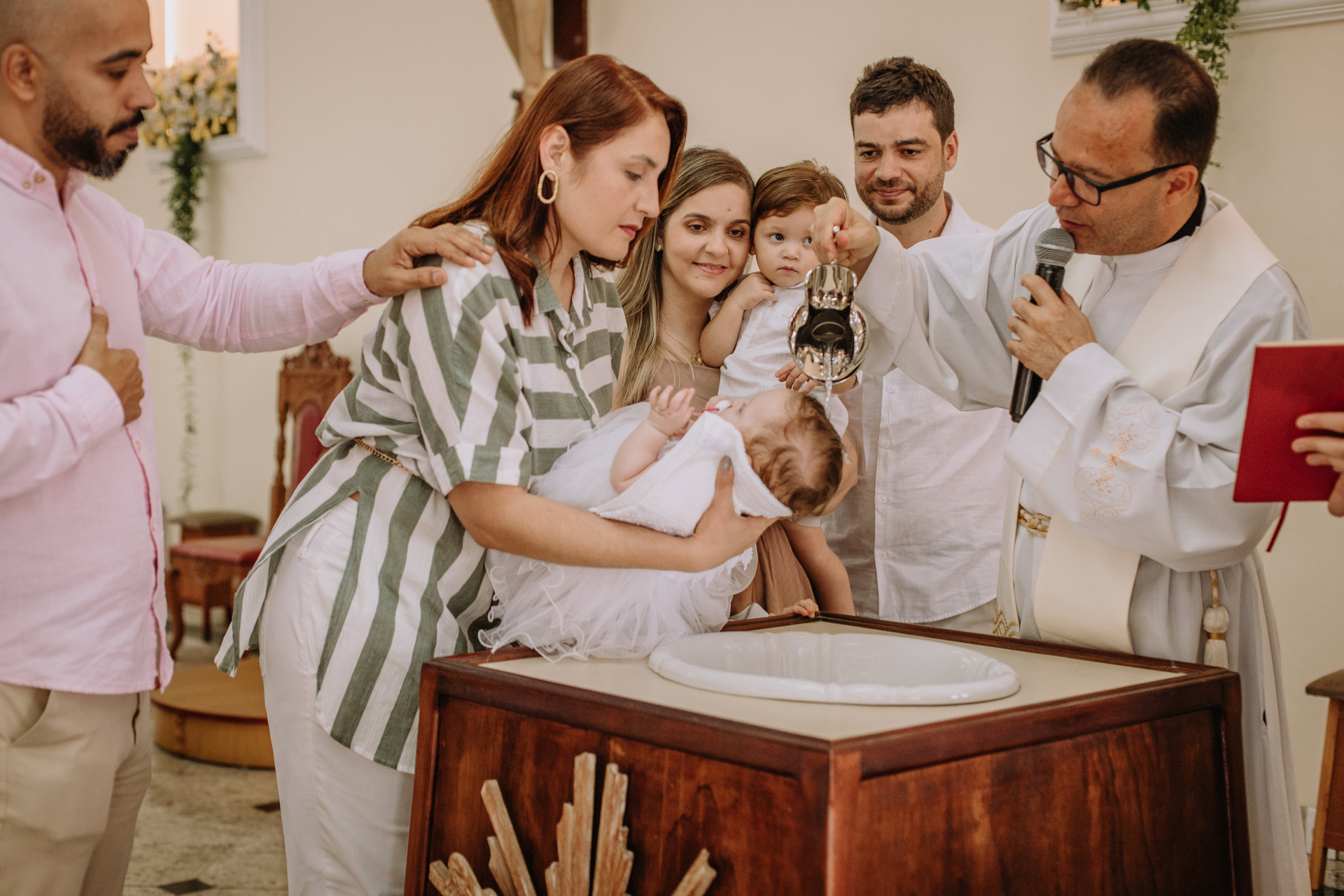 O batizado é um momento de celebração para a família e amigos próximos e merece ser fotografada enquanto a família se entrega e participa da cerimônia. A fotografia de batizado pode acontecer tanto na igreja quanto na recepção após a cerimônia. Não se preocupe com o celular! Eu estarei ali garantindo para você os melhores registros desse dia tão importante para a vida do seu filho.